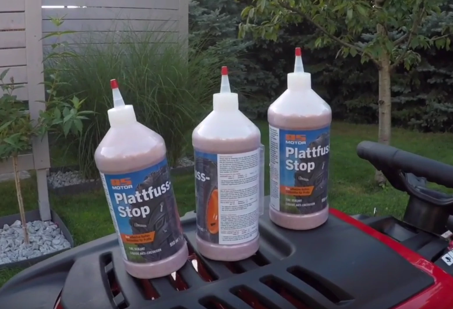 Egy fűnyíró traktor mind a négy kerekének föltöltéséhez összesen 3 db AS DEFEKTSTOP folyadékra van szüksége. A hátsó kerekekbe 1-1 flakon folyadékot kell beletölteni. Az alső kerekekbe, mivel ezek kisebb méretűek fél flakonnyi töltendő, azaz a harmadik flakont el kell felezni az első kerekek között.