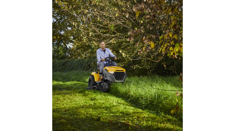 • További Jellemzők: A traktor erős acél első tengellyel rendelkezik a gyakori használat elviselésére, és a gép mosócsatlakozóval van ellátva a vágóasztal tisztításához. A traktorhoz opcionálisan mulcsozó készlet, vonóhorog és akkumulátortöltő is rendelhető.