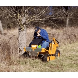 | A gondozott gyepfelületek hetente nyírt parkok, sportpályák nyírását fűnyíró traktorokkal végezzük. Azonban egy településen nagyon gyakori, hogy jelentős nagyságú a ritkábban, havonta, kéthavonta nyírt terület, ami egy normál fűnyíró traktor számára már nem ideális feladat. Ilyen esetekben nyújtanak kiemelkedő teljesítményt a speciális mulcsozó gazvágó traktorok. Ilyen gép az AS 920 a jól bevált Sherpa gazvágó család kétkerék meghajtású tagja. Ha nem extra meredek domboldalak nyírása a feladat, akkor elegendő a hátsó kerekek meghajtása is. Ennél a modellnél is természetes a differenciálzár, ami jelentősen megnöveli a kapszkodóképességet. A haladási sebesség fokozatmentesen állítható. Maximális sebessége 10,5 km/óra. Egy óra alatt képes 9.450 m2 területet levágni, úgy hogy a dupla késből álló vágórendszere a növényi részeket egészen apróra darálja, mulcsozza össze. | |