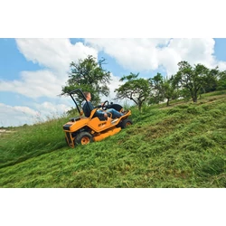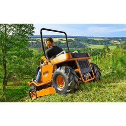 Az AS 940 Sherpa 4WD XL szélesebb és nagyobb átmérőjű kerekekkel fölszerelt változata a nem XL típusnak. Ez is a legendás Sherpa gazvágó család összkerék meghajtású tagja. Az összkerék meghajtás mellett a hátsó kerekekre ható differenciálzás is a kapaszkodóképesség fokozásának sziolgálatában áll. A partoldalakon a kitűnő meghajtás mellett természetesen jó fékekre is szükség van. A Sherpa családot természetesen ezzel is ellátták. A meghajtásról 27 Le maximális teljesízményű 2-hengeres Briggs & Stratton motor gondoskodik. Az alacsony építésnek köszönhető mélyen lévő súlypont is a stabilitást fokozza. A motor és a hidrosztatika külön csatornás hűtést kapott, annak érdekében, hogy a legintenzívebb legyen a hűtés még a tikkasztó nyári hőségben is. A dupla késes, úgynevezett mulcsozó vágórendszernek köszönhetően a levágott gazt egészen apróra képes összeaprítani, darálni. Ez a gép elsősorban a magas gaz vágására készült. A vágási magassága is magasabb, mint a nem XL típusnak. 80 és 135 mm között állítható, így ezzel nem tudunk pázsiton olyan szépen vágni, mint az alacsonyabb típussal, hiszen egy pázsit ideális vágási magassága kb. 5 cm. Ideális választás olyan településeken, ahol jelentősebb dombokkal is rendelkezik a karbantartandó zöldfelület. |